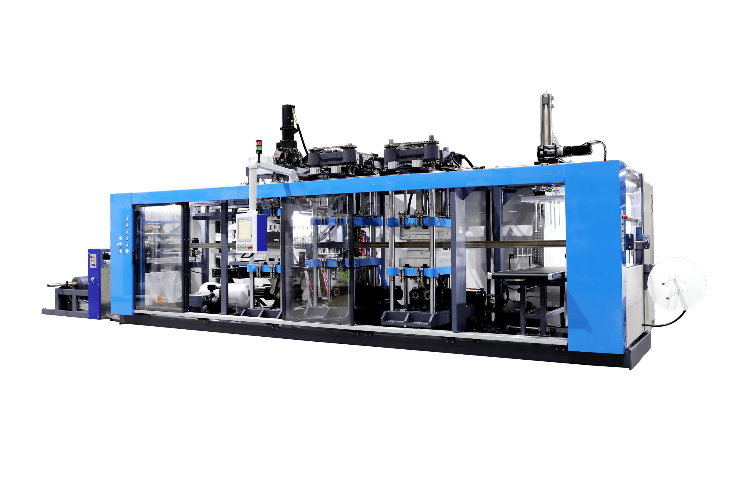 成形站上工作臺配備獨立伺服驅動的輔助拉伸頭,保證更好的產品質量
